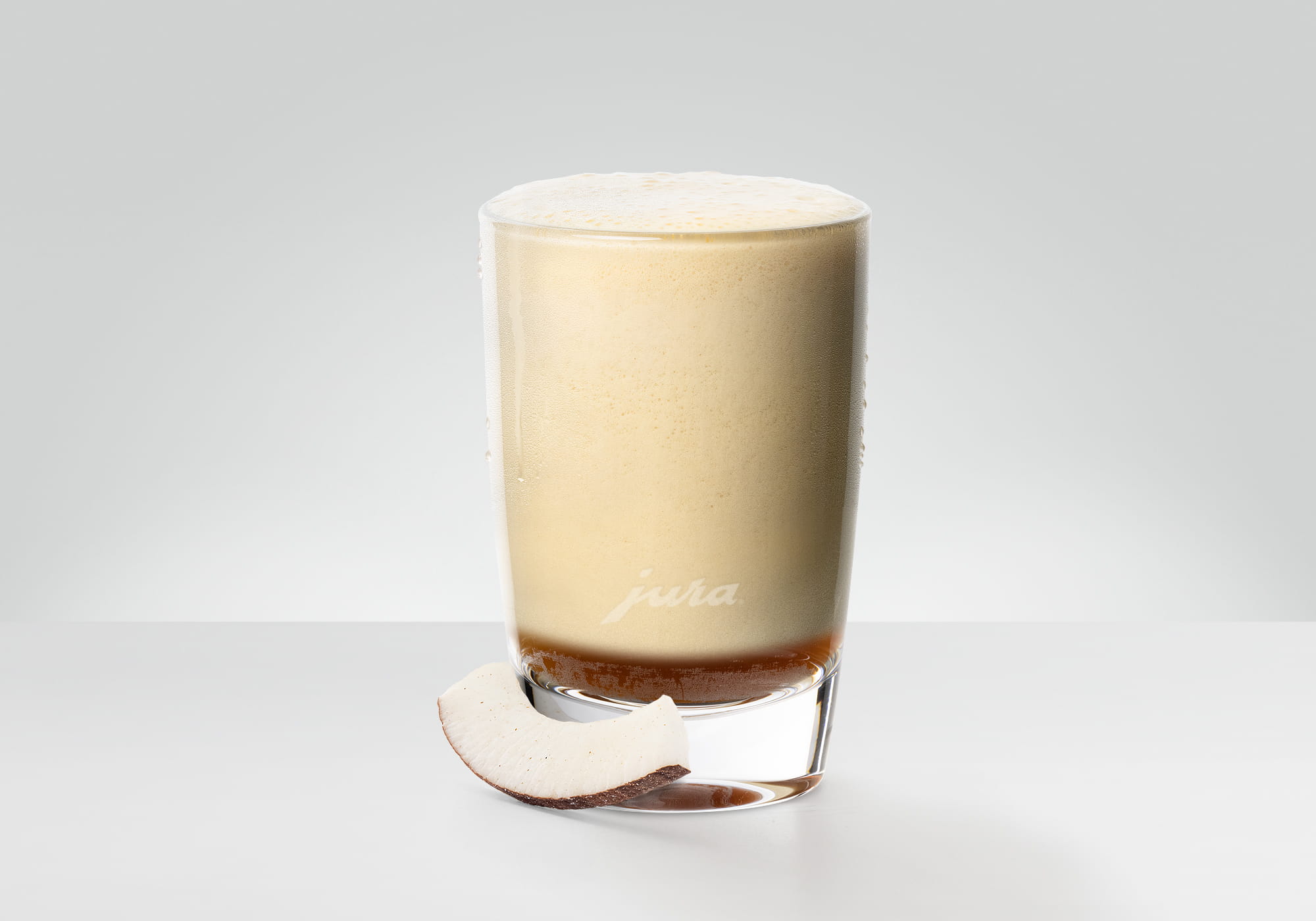 • Häll kaffespecialiteten tillsammans med resten av isbitarna i ett litet latte macchiato-glas.