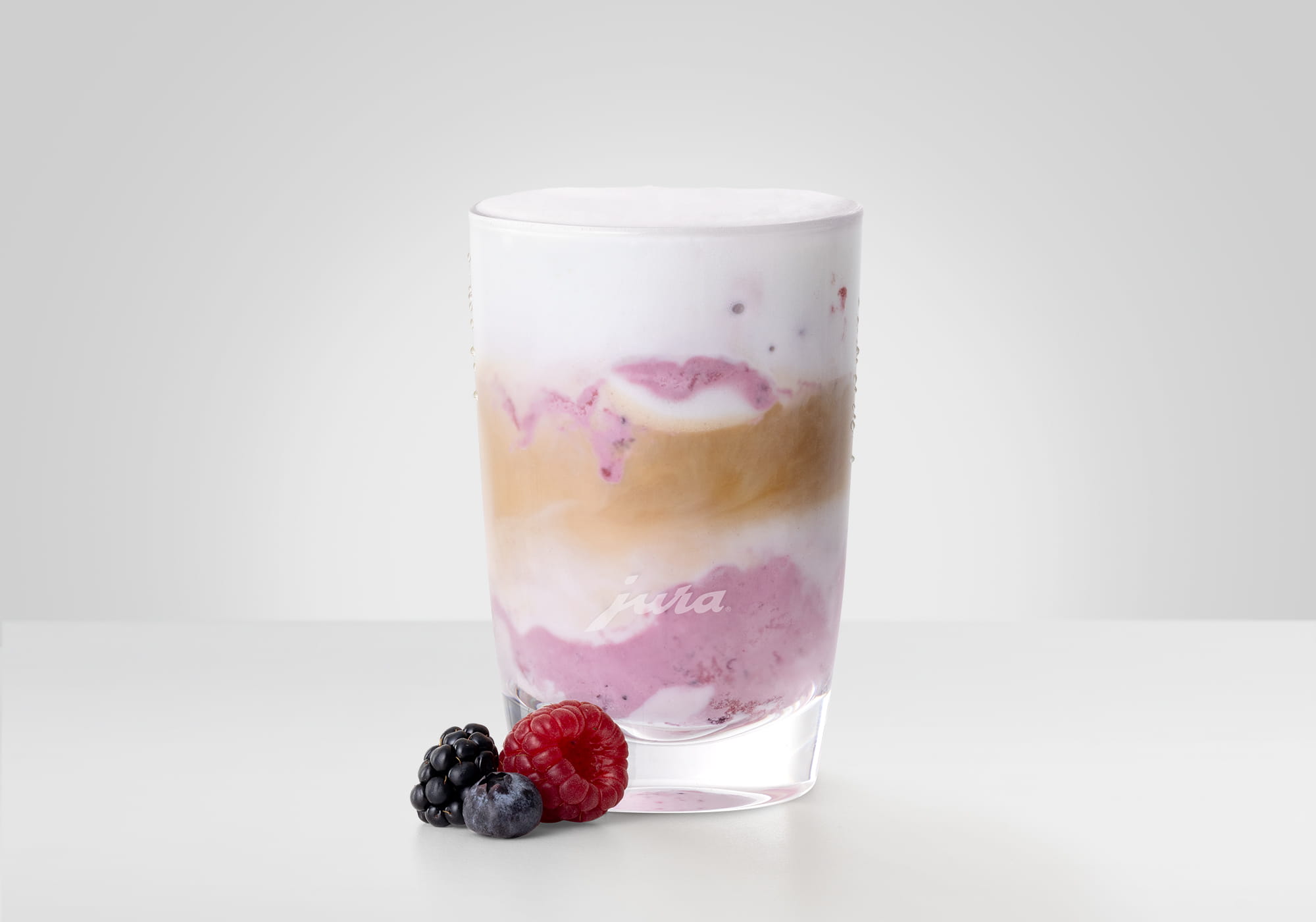 • Tillsätt två skopor skogsbärsglass i ett litet latte macchiato-glas.