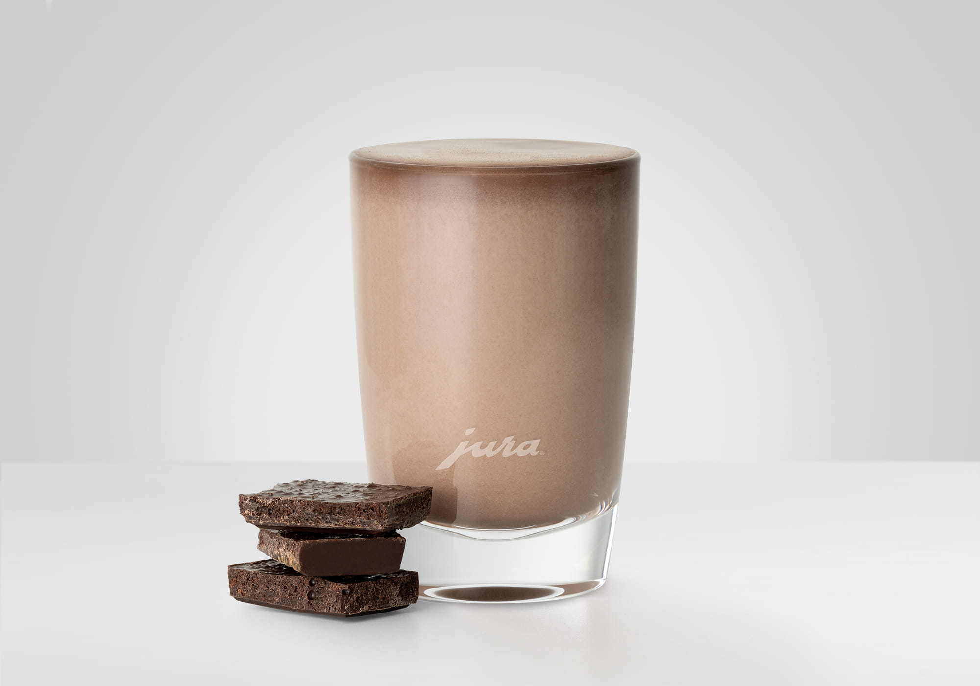 • Häll den varma chokladen i ett litet latte macchiato-glas.