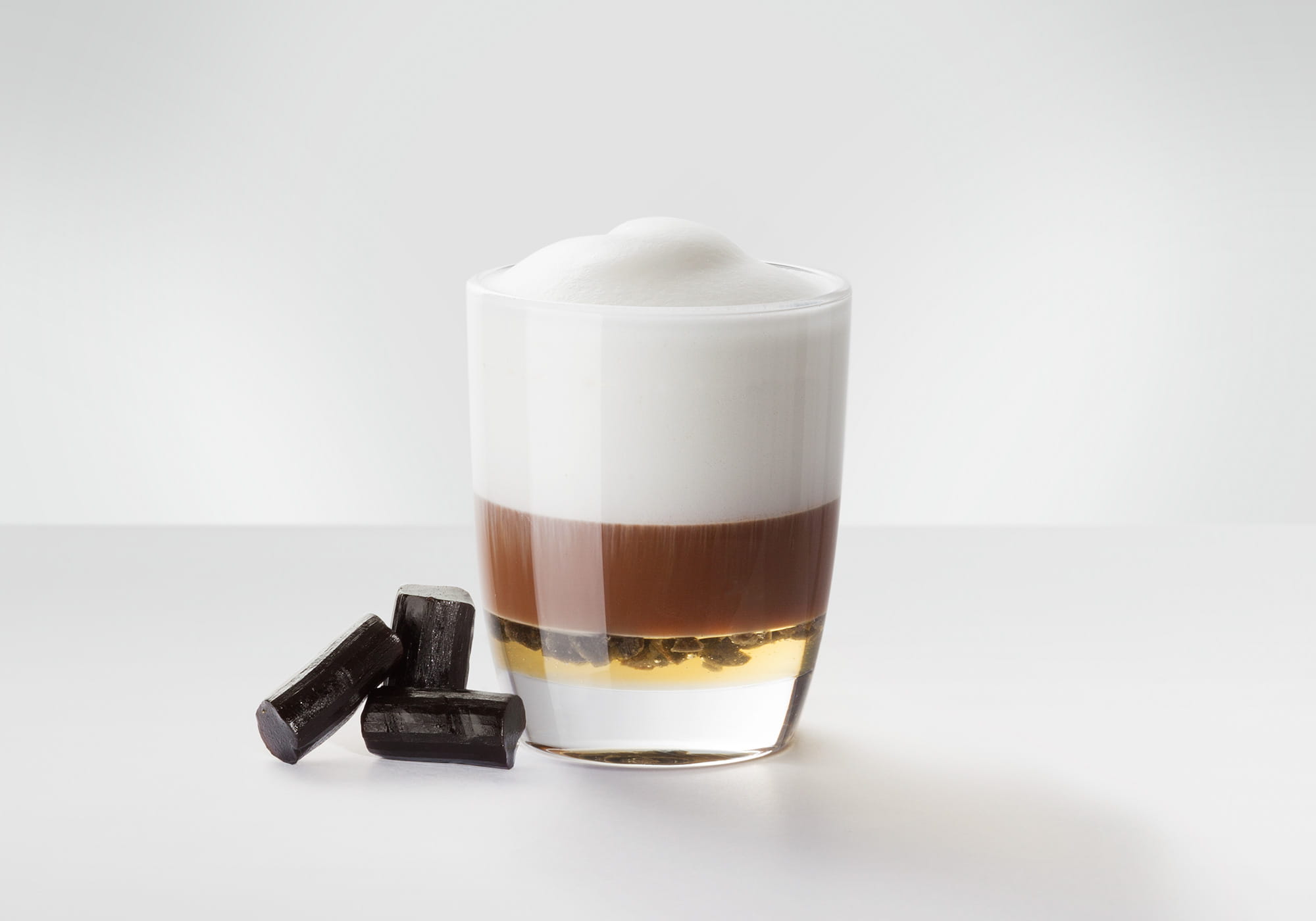 Rör om kaffespecialiteten försiktigt innan den avnjuts och strö lite extra lakritspulver över mjölkskummet.